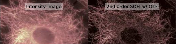 Ordinarily optical microscopy is constrained to resolving particles which are at least 200–300nm apart. Recently, a series of techniques have been developed which exceed this resolution limit by selectively switching the fluorescence of probes on and off. We developed a new approach to superresolution called SOFI which operates by a cumulant analysis of the stochastic blinking of fluorophores.
