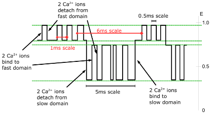 A schematic of the conformational interpretation of the dynamic FRET behavior observed with calmodulin. |